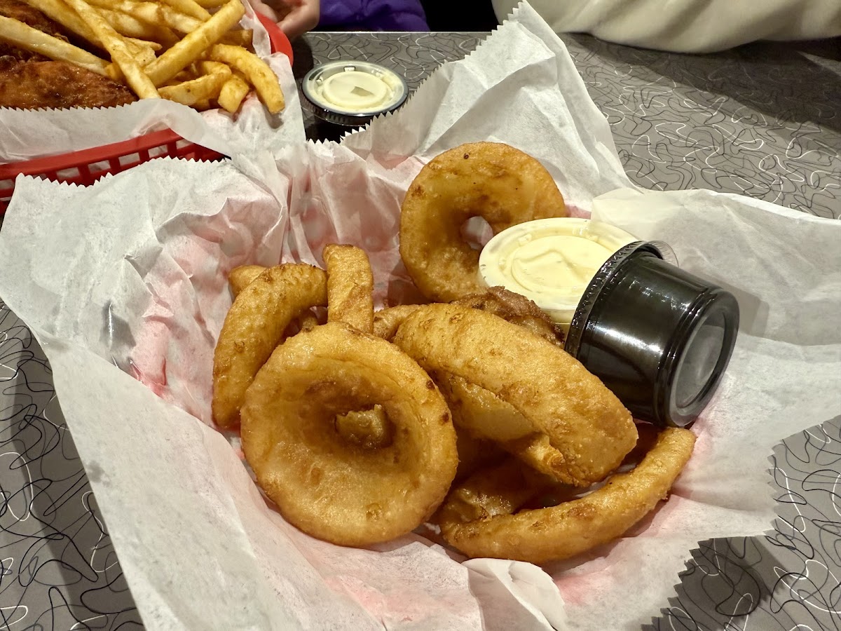 This restaurant was amazing from start to finish. The customer service was friendly and welcoming, and the portions were huge for the price. You definitely get your money’s worth. The environment has a fun 50s–60s diner vibe that makes it a great place to sit back and enjoy a meal. The pork tenderloin sandwich was truly enormous, and the onion rings were absolutely amazing. The burger was cooked perfectly, and the chicken tenders were just as good. To top it all off, the milkshake was beyond delicious. Overall, great food, great service, great prices, and a fantastic atmosphere. I will definitely be back!